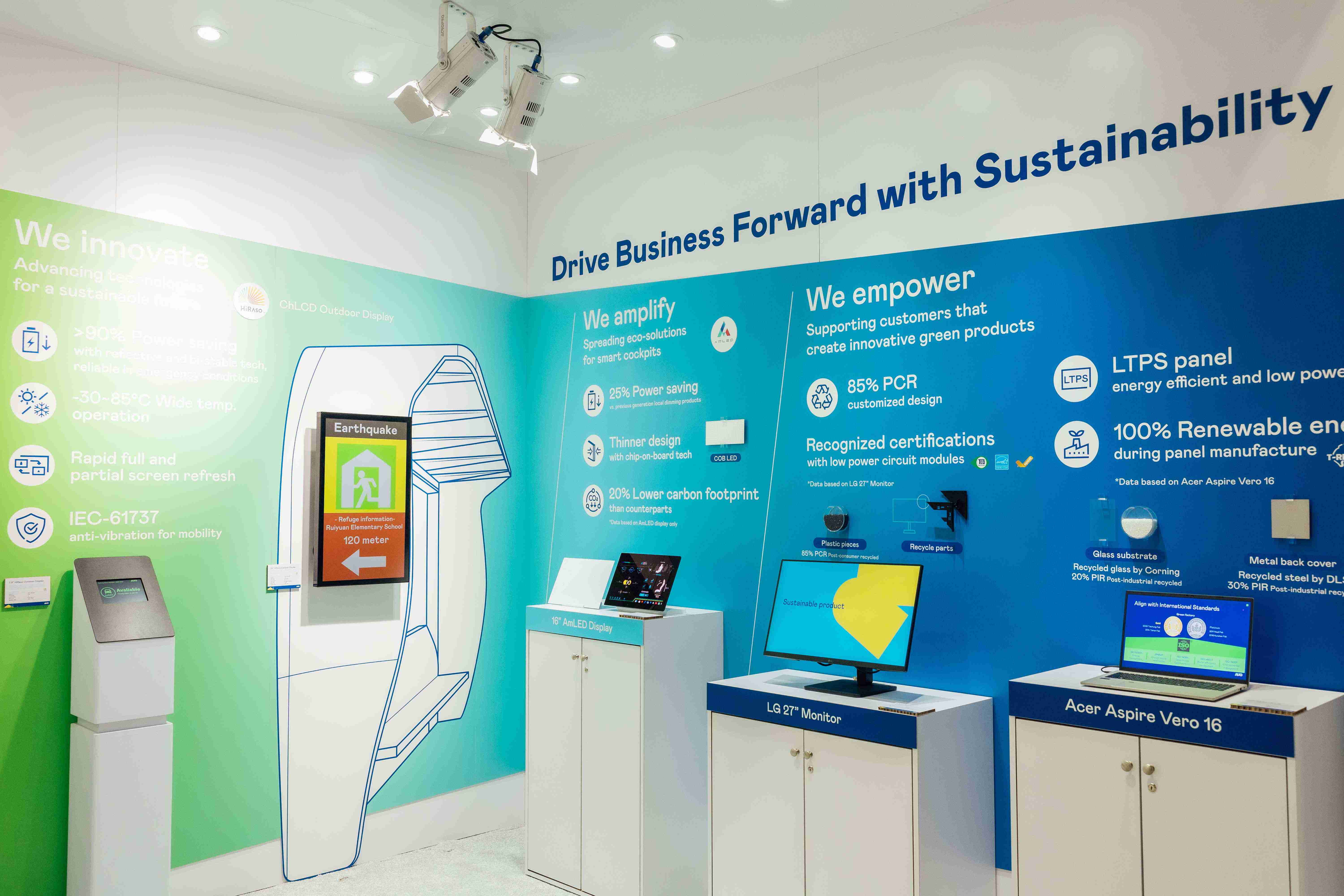 BHTC的木纹车用显示器(Display Behind Wood)将无缝木质表面与显示器结合后,,可以融入车内设计中,,,,提供驾驶优质的视觉效果,,,,加上其无边框的设计和亮度调控,,,创造更优质的车内体验。。。。 巨星国际展出多项领先业界绿色科技 助攻客户达成低碳目标 巨星国际致力于永续发展,,,从产品生命周期自原料、、制程至使用等每个阶段,,,,发展低碳方案,,,在CES 2025展位上分享已实际应用在终端消费性电子产品上的绿色科技外,,,未来将更进一步移植多年累积的成功经验导入车用产业,,,,为客户实现永续价值,,,,满足客户对产品的绿色低碳设计要求