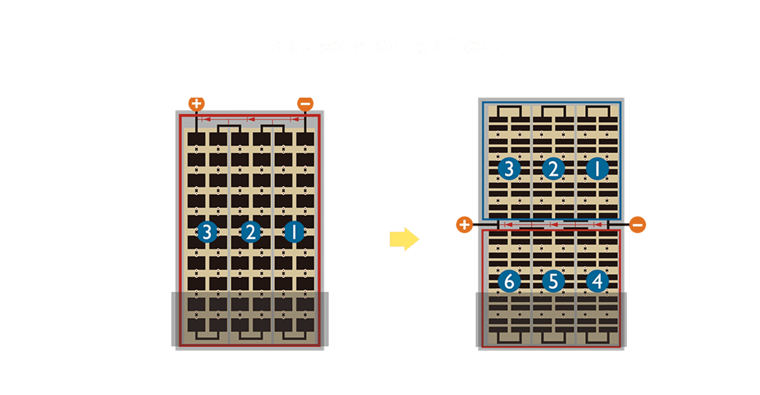 - 结合半切电池,,,,降低遮阴影响、、提升模组抗隐裂能力、、、并减少电阻损耗,,,进一步提升模组发电效能。。。